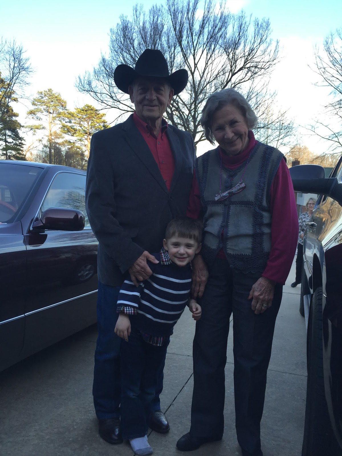 Jones had asked for tractors and a bicycle. Santa left a note for Jones that said, "I couldn't fit one of your presents down the chimney, but I left it out front for you!" So, we took him outside to check out what Santa had left ... it was the bicycle!